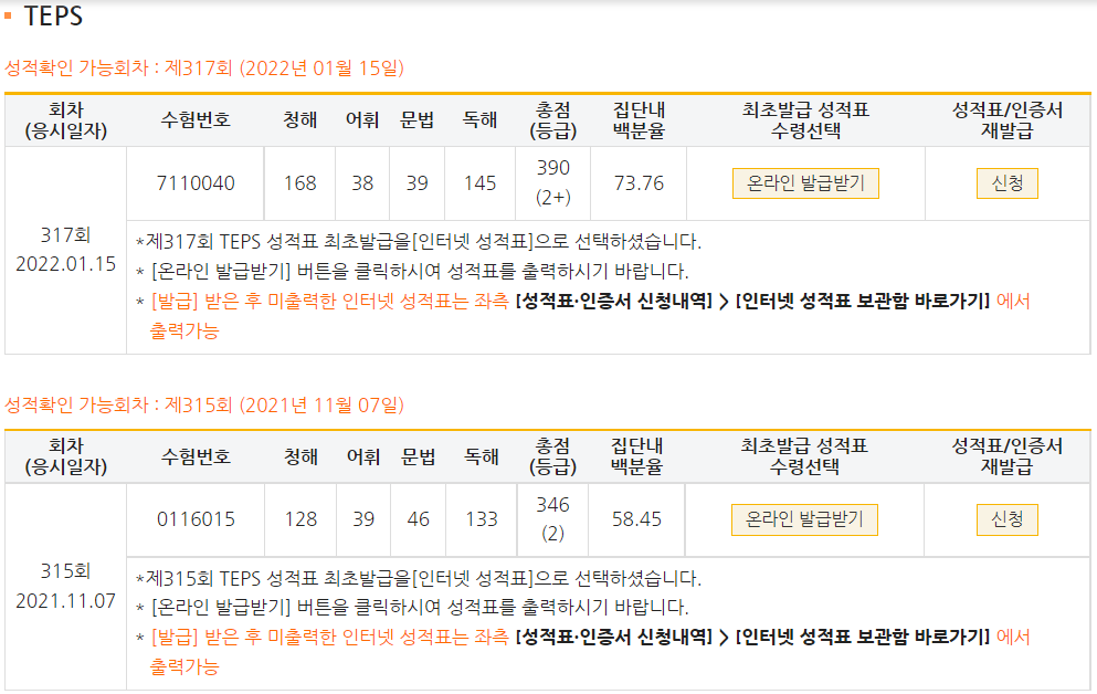 | 수강후 | 168점 | 38점 | 39점 | 145점 | 390점 |