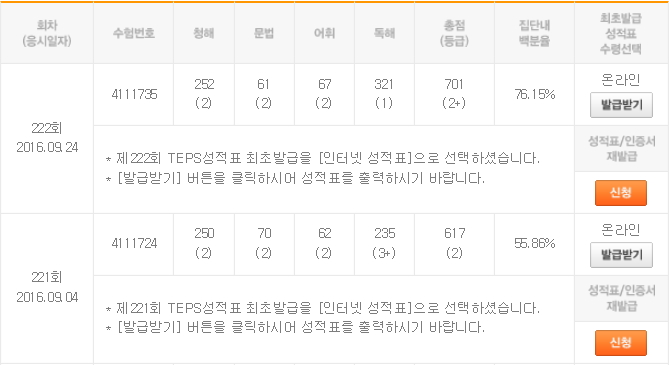 | 수강후 | 252점 | 61점 | 67점 | 321점 | 701점 |