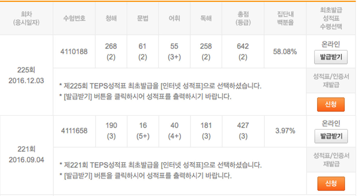 | 수강후 | 268점 | 61점 | 55점 | 258점 | 642점 |