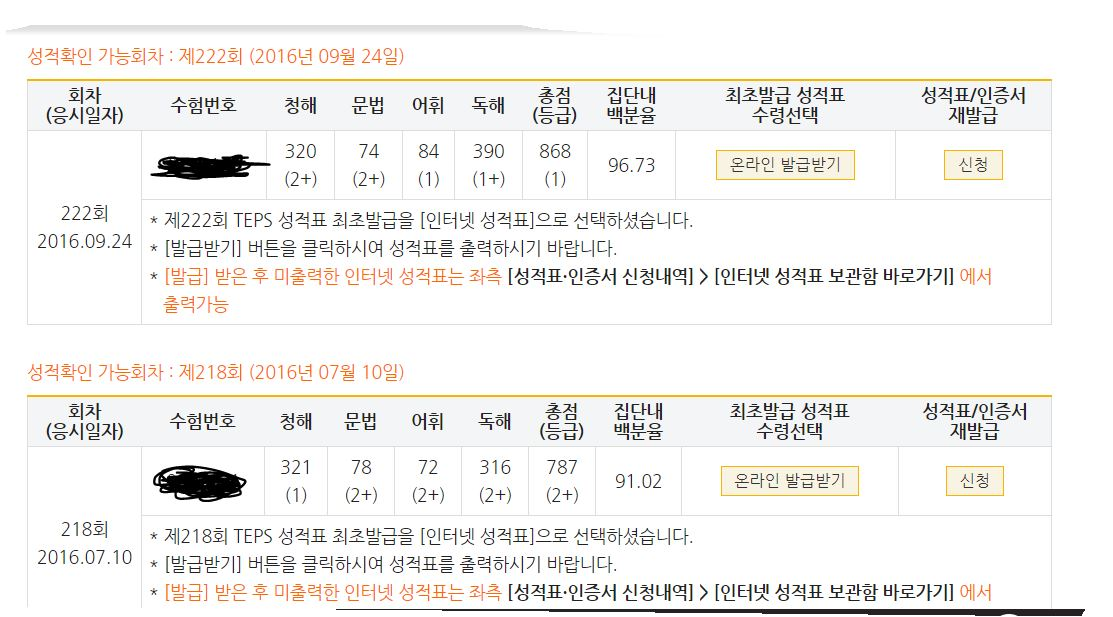 | 총점(990점) | 786점 | 868점 |