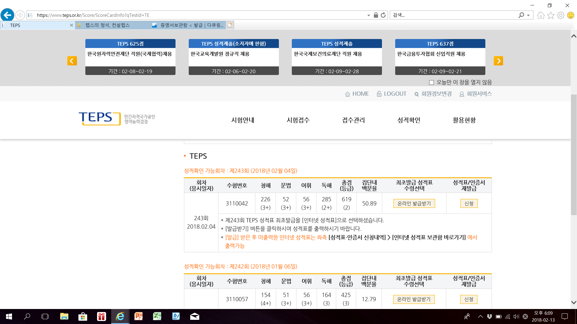 | 수강후 | 226점 | 52점 | 56점 | 285점 | 619점 |